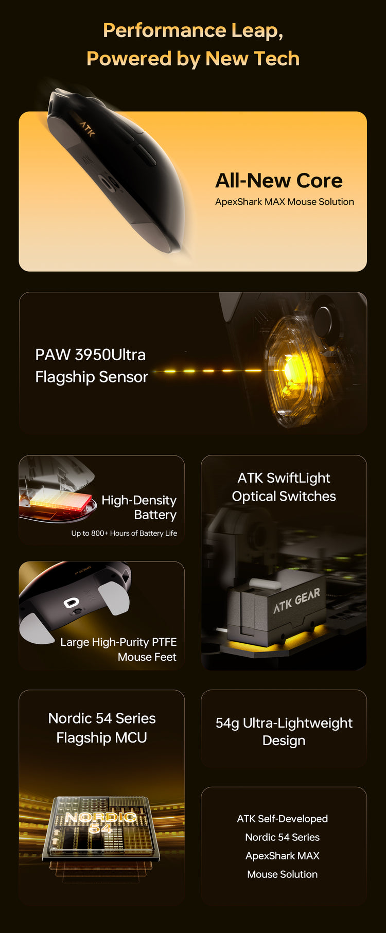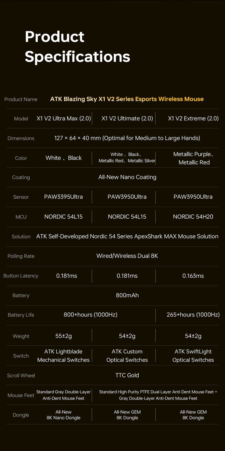 All-round design, newly upgraded with the Nordic 54 MCU, 800mAh battery, all-new Nano Coating, and more. Available in signature colors to craft your ultimate esports experience.